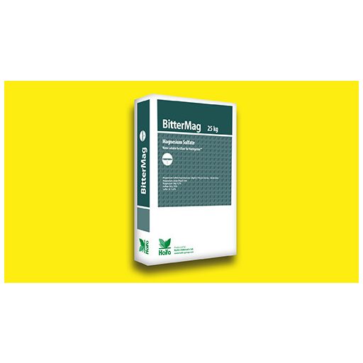 Kristallines Magnesiumsulfat-Heptahydrat Boden- und Blattdünger zur Behandlung von Mangelsymptomen. Wirkstoffe: 16% MgO, 30% Schwefel (SO3) Dosierung der Anwendung: Als Nährlösung in Ackerkulturen 5%, Obst, Gemüse, Zierpflanzen 1-2%