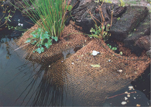 Die Kokosnetze halten den Teich und/oder das Gartenbeet an Ort und Stelle, bis die Wurzeln der dort gepflanzten Pflanzen vollständig durchgewurzelt sind. Ein weiterer Vorteil dieser Anwendung ist, dass die cca. In 1,5 bis 2 Saisons kompostieren die Kokosfasern als natürliches Material und werden vollständig vom Boden absorbiert.