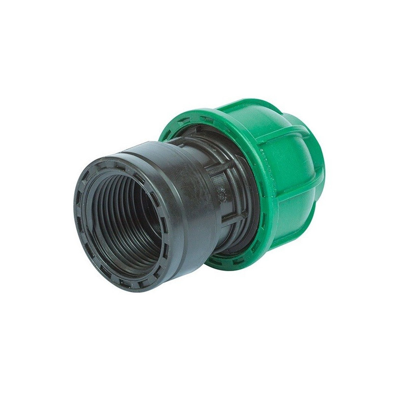 Gerades 6/4"-Anfangselement mit Innengewinde für KPE 50-Rohr. Ermöglicht den Anschluss des Rohres an die Grundleitung mit dem 6/4"-Innengewindeschlitz. Das Rohr kann am anderen Ende des Elements mit einer lösbaren Verbindung befestigt werden, was die Mont...