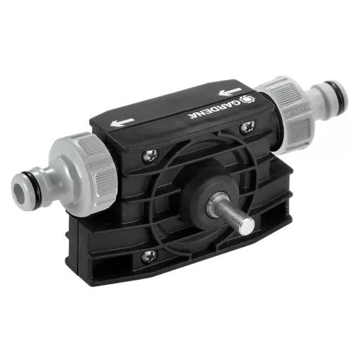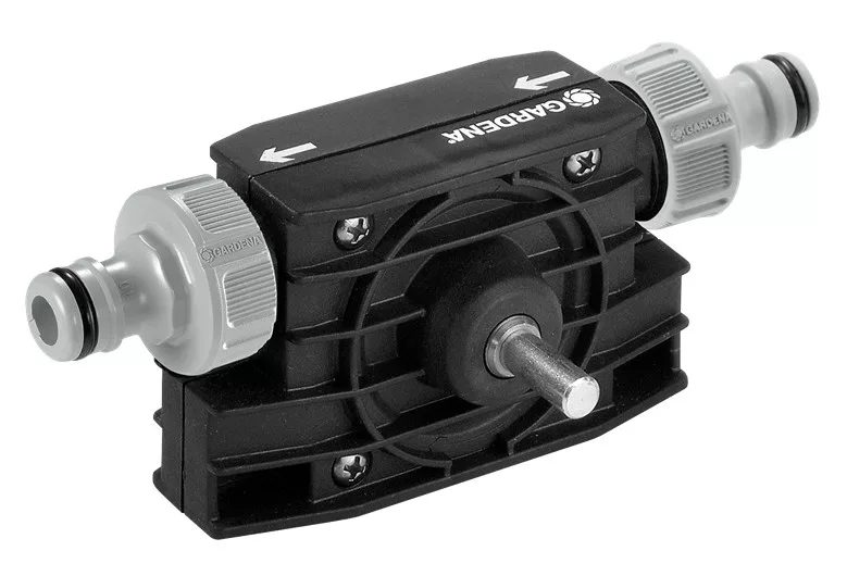 Ideal zum flexiblen Pumpen von kleinen Wassermengen durch oder aus. Einfach an der Bohrmaschine zu montieren. Die Antriebswelle passt in die Maulteile aller handelsüblichen Bohrmaschinen (Ø 8 mm). Die Pumpe mit Original GARDENA Anschlussstücken ist sofort einsatzbereit.
