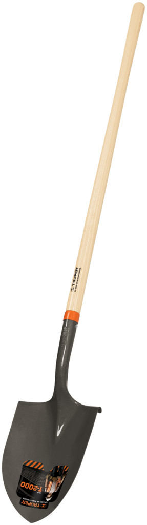 Spaten, Kopf aus wärmebehandeltem Stahl, hinten geschlossen, Stiel aus lackiertem Holz, 123 cm lang