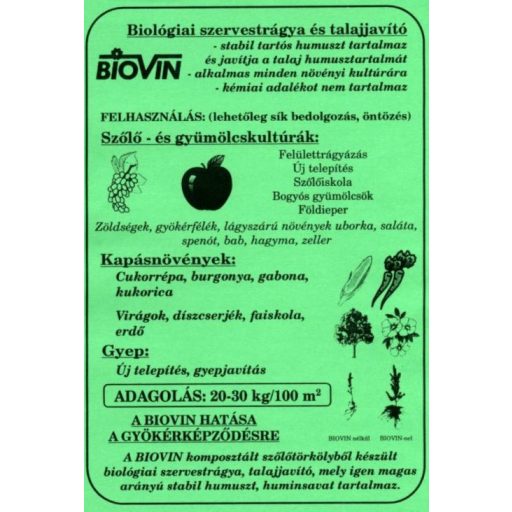 - 100 kg BIOVIN trocken entsprechen 3-5 t reifem Stallmist. Transport und Ausbringung sind leichter und einfacher.