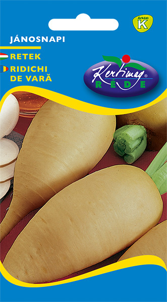 Der hellbraune, geschälte Rettich mit einer Wachstumsdauer von 50-70 Tagen ist ein beliebter Sommerrettich für den Freilandanbau. Die Knolle ist groß, bräunlich-gelb, karottenförmig, das Fruchtfleisch ist weiß, knackig und von guter Qualität und neigt nicht zum Pulverisieren. Sie benötigt eine ständige Wasserzufuhr. Aussaat: von Mai bis August in den offenen Boden. Keimung bei 6-14 0C für 6-8 Tage. Nach dem Auflaufen ausdünnen. Saatgutbedarf: 6-10 g/10 m2, Platzbedarf: 25-30x3-5cm. Ernte: von Juli bis Oktober.