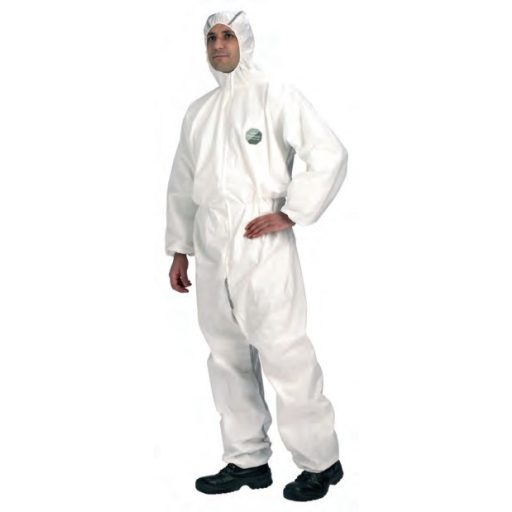 - Vierlagiges SMMS-Polypropylengewebe von DuPont Multiclean (55 g/m2) - stark belüfteter, antistatischer Schutzanzug mit Kapuze - Schutz gegen Staub und radioaktive Partikel - beständig gegen flüssige Sprays und Chemikalienspritzer (30% Schwefelsäure, 10% Natriumhydroxid, 10% Schwefelsäure, 10% Natriumhydroxid)