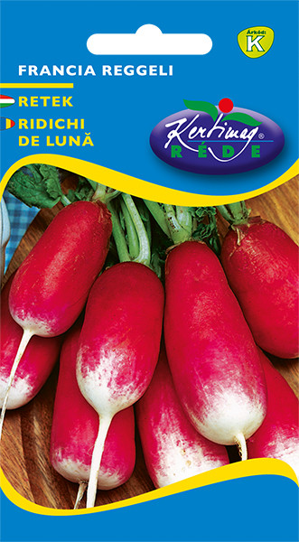 Die Knolle hat eine charakteristische zylindrische Form, ist leuchtend rot und hat eine weiße Spitze.