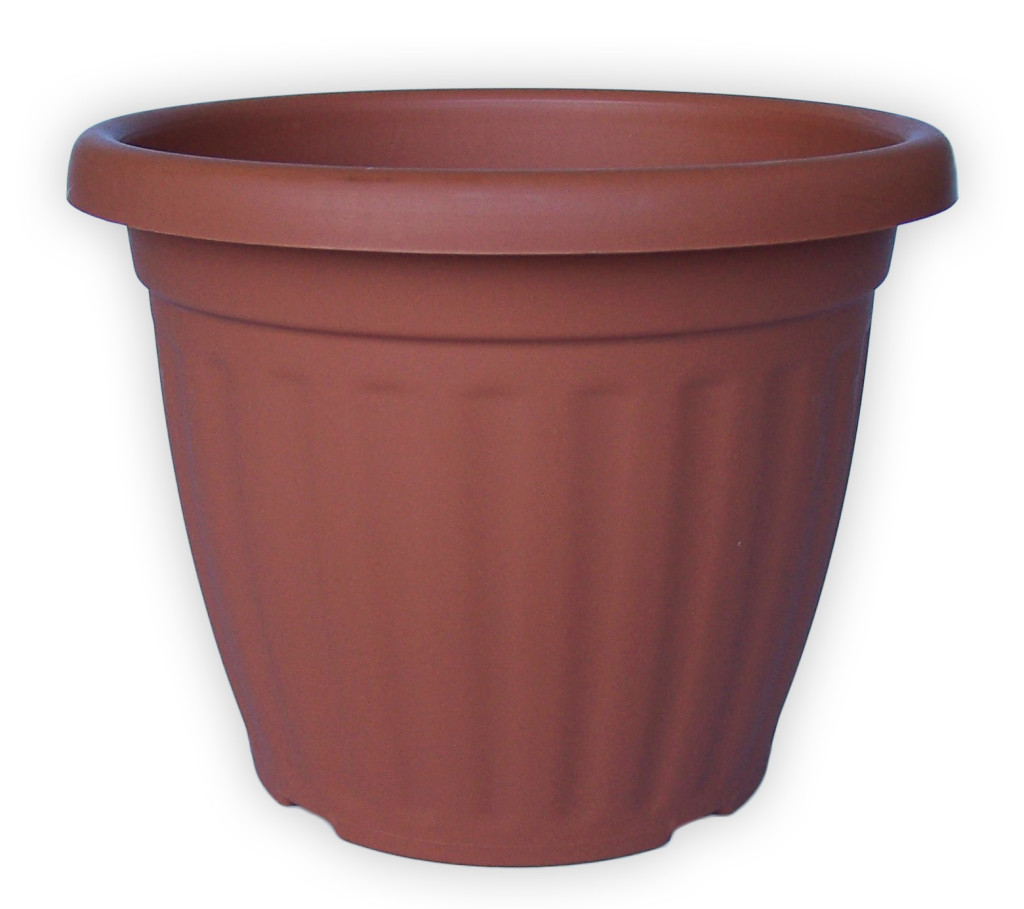 Die dekorative Terrakottafarbe verleiht dem Kunststofftopf einen Tontopfcharakter.