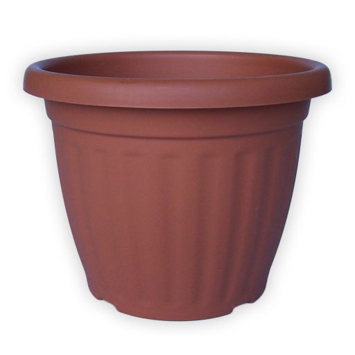 Die dekorative Terrakottafarbe verleiht dem Kunststofftopf einen Tontopfcharakter.