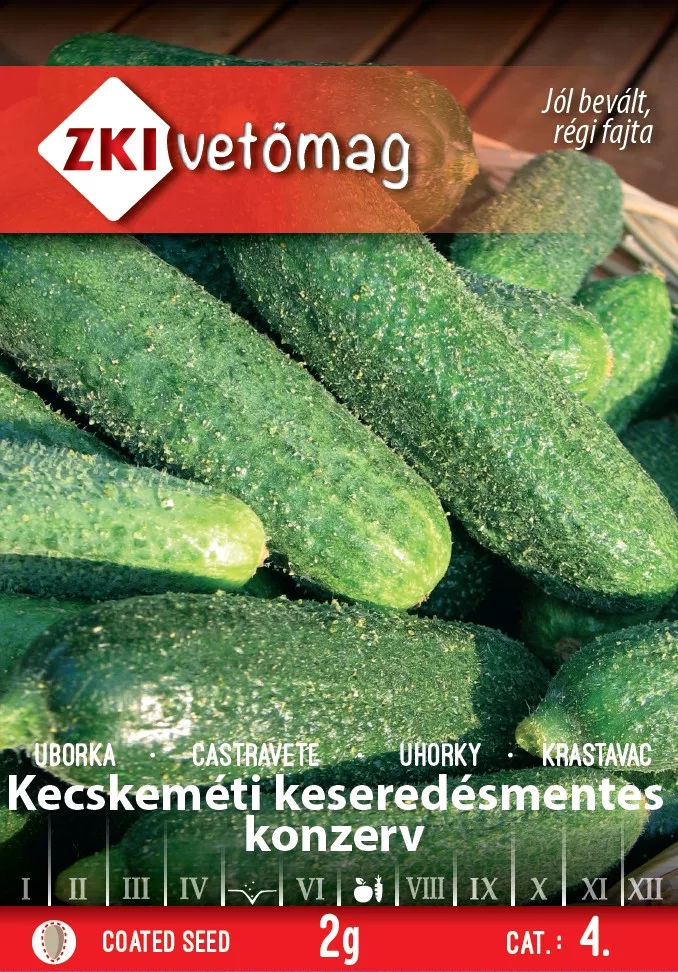Die bitterfreie Gurke Kecskemét ist eine gut etablierte, ertragreiche Sorte, die viele kleine Früchte produziert. Die Gurken sind sehr gut pflückbar, haben eine gute Süße und sind ertragreich. Die Gurken sind von hoher Qualität und wachsen nicht über. Frühe, schnelle Reife, sowohl für die Haupt- als auch für die Zweitfrucht geeignet. Genetisch bitterfrei, mit rein weiblichen Blüten.