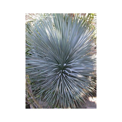 Diese immergrüne, wunderschöne Pflanze gehört zur Familie der Agavaceae. Das Besondere an dieser Yucca ist die Farbe ihrer Blätter und die Üppigkeit ihres Blattwerks. Ihre abgestorbenen, trockenen Blätter bedecken den solitären Stamm wie ein Rock, während die übrigen Blätter in alle Richtungen voneinander abstehen. Das Laub von Yucca rostrata ist graublau.