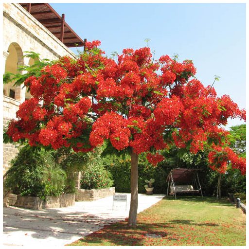 Allgemein bekannt als Delonix regia - Firewood, Flamboyant, Royal Poinciana, Flamboyant, Der aus dem Norden und Westen Madagaskars stammende Baum wird von einigen als der schönste Laubbaum der Welt bezeichnet. Seine leuchtend grünen, ledrigen Blätter wer...