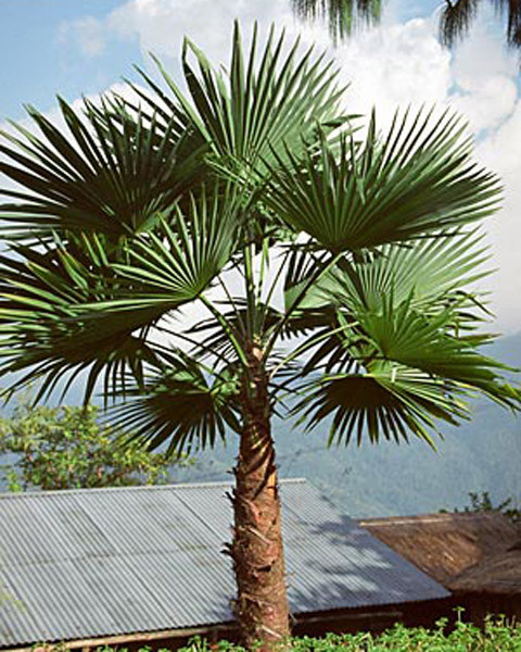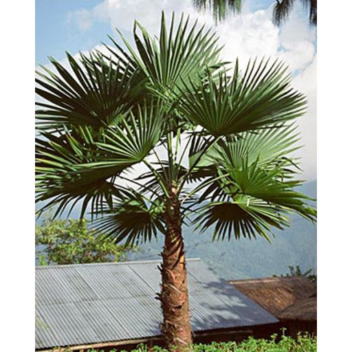 Diese Palmenart ist sicherlich ein Liebling der Sammler. Die großen, robusten, fast kreisrunden Palmenblätter ähneln dem Livistone. Ihr Stamm ist glatt mit Resten von Palmblättern und mit langen dunkelbraunen, dichten Fasern bedeckt. Da sie gut kältetolerant ist, wird sie für die Anpflanzung im Garten empfohlen. Ihr Wachstum ist schnell.