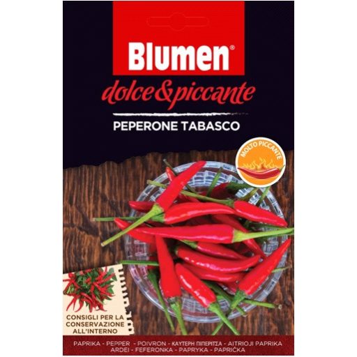 Tabasco Peperoni - sehr scharf Sehr scharfe Sorte, deren Früchte bei der Reifung orange oder rot werden. Hervorragend frisch gegessen oder mit Olivenöl beträufelt. Wird in berühmten Rezepten wie dem ungarischen Gulasch oder dem nordafrikanischen Harissa v...