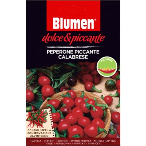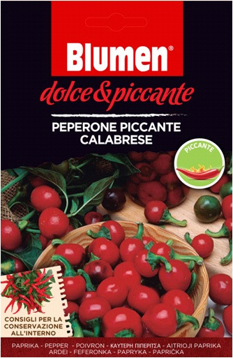 Kalabrische Peperoni stark - würzig Eine mittelstarke Sorte, die Früchte sind rot, rund und höckerig, 3,5-4 cm groß. Sie sind auch zum Einlegen in Öl geeignet. Sie ist sonnenhungrig. Empfohlene Aussaattemperatur: 20/30 °C. Kann im Freiland oder in einem K...