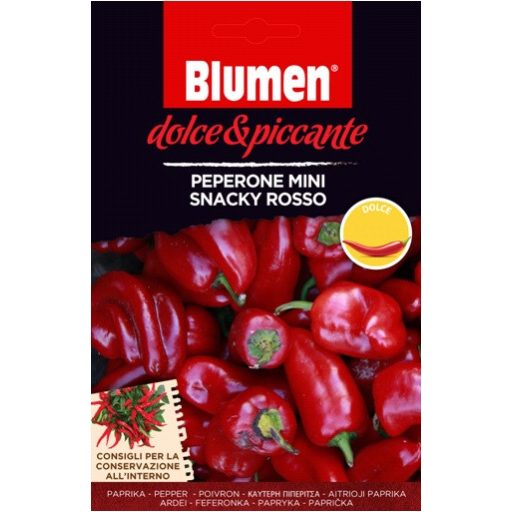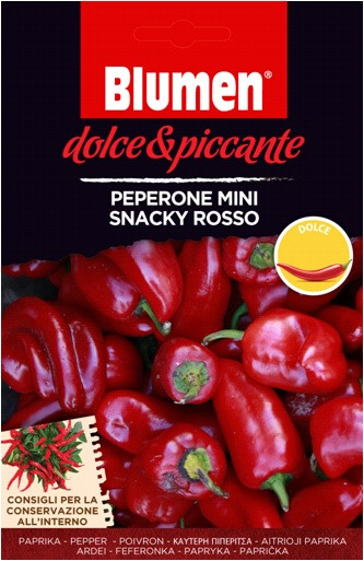 Mini-Snack Peperoni - süß Extrem süße Sorte mit frischem und fruchtigem Geschmack. Ideal für den Rohverzehr. Die Pflanze ist sehr kompakt und produziert eine sehr große Ernte. Sie braucht viel Sonne. Empfohlene Aussaattemperatur: 20/30 °C. Kann im Freilan...