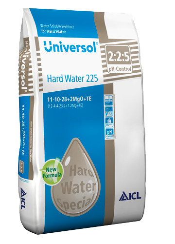 Es kann speziell für blühende Zierpflanzen verwendet werden, um einen kompakten Wuchs zu erreichen und die Pflanzen zu stärken. Aufgrund des N:K-Verhältnisses von 2:5 kann es in Bewässerungswasser mit relativ hohem Stickstoffgehalt und in Kombination mit anderen Stickstoffverbindungen (z.B. Salpetersäure) eingesetzt werden. Universol Hard Water 225 enthärtet hartes Bewässerungswasser und neutralisiert dessen Bikarbonatgehalt.