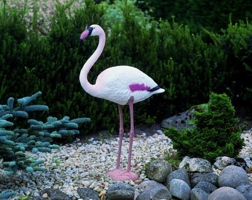 Tierfigur, Flamingo, 90 cm, mit rundem Sockel Nicht alle künstlich angelegten Teiche und Gärten dürfen von lebenden Enten, Schwänen und anderen Land- und Wassertieren besucht werden. Wenn Sie ein wenig Leben in Ihren Teich oder Garten bringen wollen, können Sie aus unserem breiten Sortiment an Wasser- und Garten-Tierimitationen wählen. Unsere naturgetreuen Dekorationsartikel bringen Farbe und Leben in Ihren Teich.