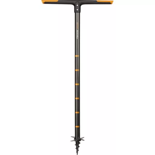 Fiskars hat die traditionelle Lösung mit Spiralgewinde durch zwei Borstahlklingen ersetzt, die in einem optimalen Winkel ineinander greifen. Diese Konstruktion erleichtert das Bohren, auch in widerstandsfähigeren Bodenarten. Das Werkzeug klemmt nicht, da das Gewinde tiefer reicht. Die gebohrte Erde kann nach dem Bohren des Lochs in einem kleinen Haufen herausgehoben werden.