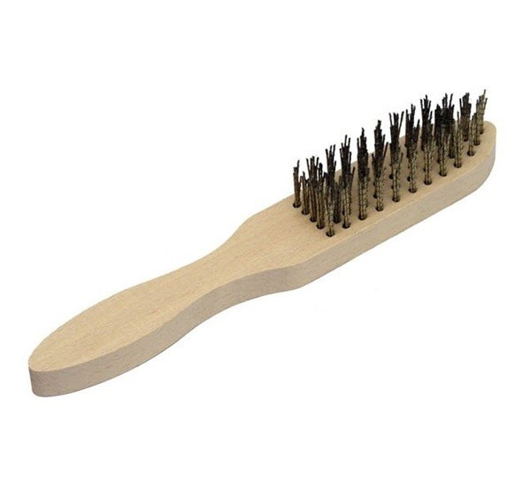Drahtbürste mit Holzgriff.