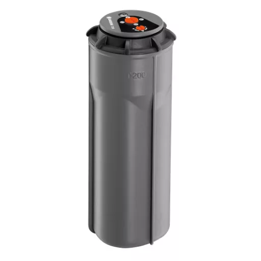 Der GARDENA Turbinenregner T 200, Teil des GARDENA Regnersystems, ist ideal für die Bewässerung von mittelgroßen Rasenflächen bis 200 m² geeignet. Der Turbinenregner T 200 kann mit den Turbinenregnern T 100 und 380 (Art.-Nr. 8201-29 und 8205-29) sowie dem Versenkregner OS 140 (Art.-Nr. 8220) kombiniert werden. Seine Reichweite kann je nach Untergrund zwischen 5 und 8 m eingestellt werden. Der gewünschte Beregnungssektor lässt sich am Regnerkopf stufenlos und ohne Werkzeug im Bereich von 25° bis 360° einstellen. Die beregnete Fläche kann vom kleinsten Sektor bis zum ganzen Kreis reichen. Mit seiner Memory-Funktion kehrt der Regner automatisch in den voreingestellten Sektor zurück, auch wenn der Regnerkopf absichtlich gedreht wird. Das bedeutet, dass das Gerät immer die richtige Fläche bewässert. Um die Bewässerung flexibel zu gestalten, können Sie je nach Bewässerungssektor einfach zwischen vier verschiedenen Wasserflussdüsen wählen. Dies ist besonders wichtig, wenn Regner mit unterschiedlichen Sektoreneinstellungen für eine gleichmäßige Bewässerung zusammen verwendet werden. Der eingebaute Schmutzfilter ermöglicht einen unterbrechungsfreien Betrieb. Der zuverlässige, sanddichte Turbinenantrieb sorgt für eine lange Lebensdauer. Durch den Einbau eines Entleerungsventils (Art.-Nr. 2760-20) in die Rohrleitung kann das Regnersystem frostsicher gemacht werden. Der Anschluss erfolgt über ein 1/2" Innengewinde.