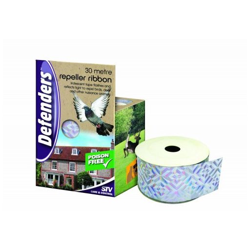 Die Bewegung des Bandes und sein extrem intensiver Schimmer halten unerwünschte Vögel und Tiere fern. Das Band kann in Streifen geschnitten oder auf eine größere Länge gespannt werden.