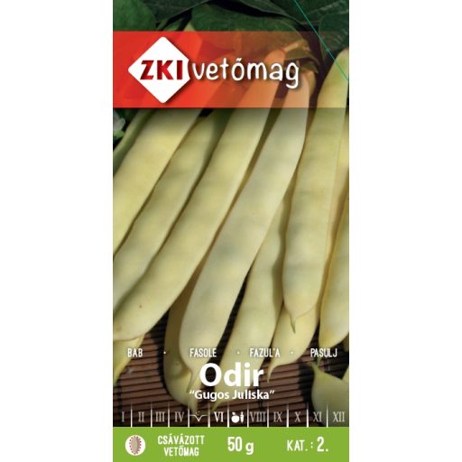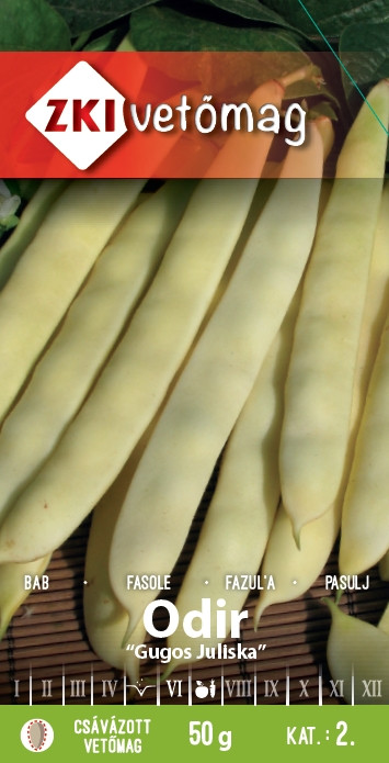 Buschbohne mit gelben Hülsen, mittleres Alter. Hülsen breit, abgeflacht, 16 cm lang. Die mittelgroßen Samen sind weiß. Die attraktiven Schoten eignen sich sowohl für den Frischverzehr als auch zum Einfrieren.