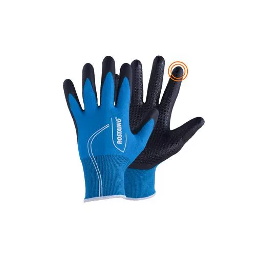 - Wasserabweisende Nitrilbeschichtung auf der Handfläche und den Fingern, damit Ihre Hände trocken bleiben.
