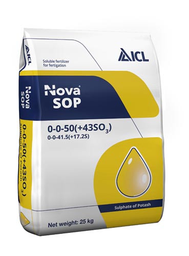 Nova SOP ist die richtige Wahl für Pflanzen mit hohem Kalium- und Schwefelbedarf, da es für eine ausreichende Nährstoffversorgung sorgt und so Mangelerscheinungen vorbeugen kann. Nova SOP ist stickstofffrei und daher für eine breite Palette von Kulturen geeignet. Insbesondere dann, wenn die Stickstoffzufuhr während der Vegetationsperiode reduziert werden muss, um das richtige N:K-Verhältnis zu erhalten.