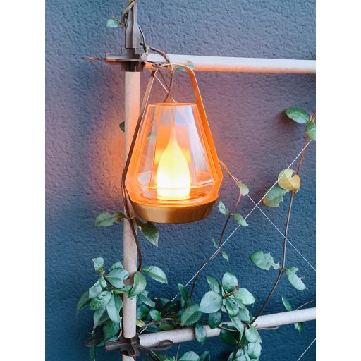 "Größe: 13 x 19 cmFuß und Griff aus messingfarbenem Metall.Transparenter Kunststoff umgibt die Kerze.Weiße SMD-LED mit tanzendem Flammeneffekt.Polykristalline 5-V-Solarzelle.Wiederaufladbare Batterie 3,7 V - 750 mAh 18650 Lithium.Inklusive USB-Kabel