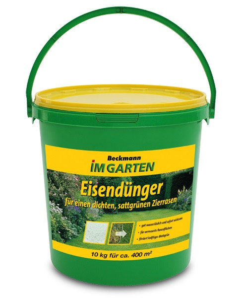 Zeigen die Gartenpflanzen Anzeichen von Eisenmangel, wie z. B. das Verblassen der Blätter oder das Vergilben der jungen Triebe, lösen Sie 20 g Dünger im Gießwasser auf und bringen Sie ihn gleichmäßig pro Quadratmeter aus.
