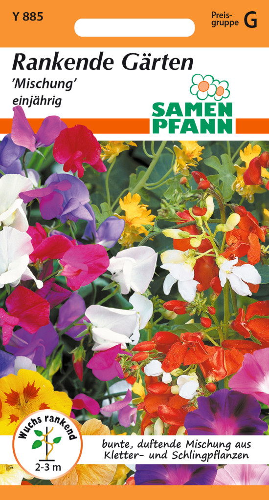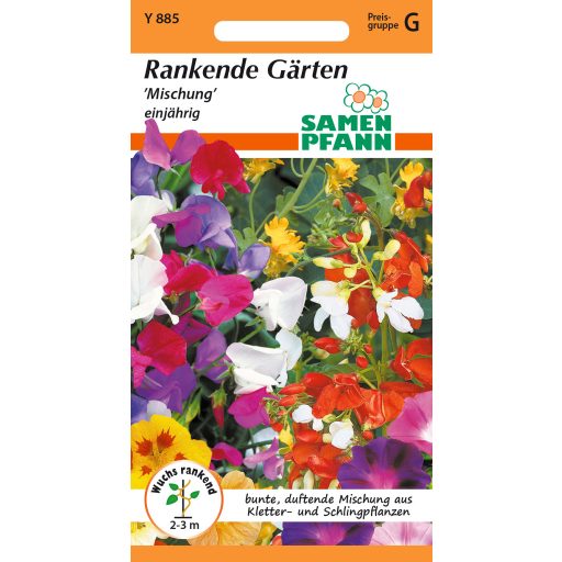 Y885 Climber-Mischung einjährig Ausreichend für etwa 5m2 Eine Mischung aus Ausläufer-Kletterpflanzen-Sommerblumen. Wind-, und Lärmschutzwände, Zäune, Mauern, Spaliere. Enthält mehrere Arten schnell wachsende, und reichlich blühende, kriechende Arten. ...
