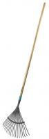 Fächerförmiger Laubkehrer mit Stahlkopf für die Beseitigung von Laub, Gras und Gartenabfällen.