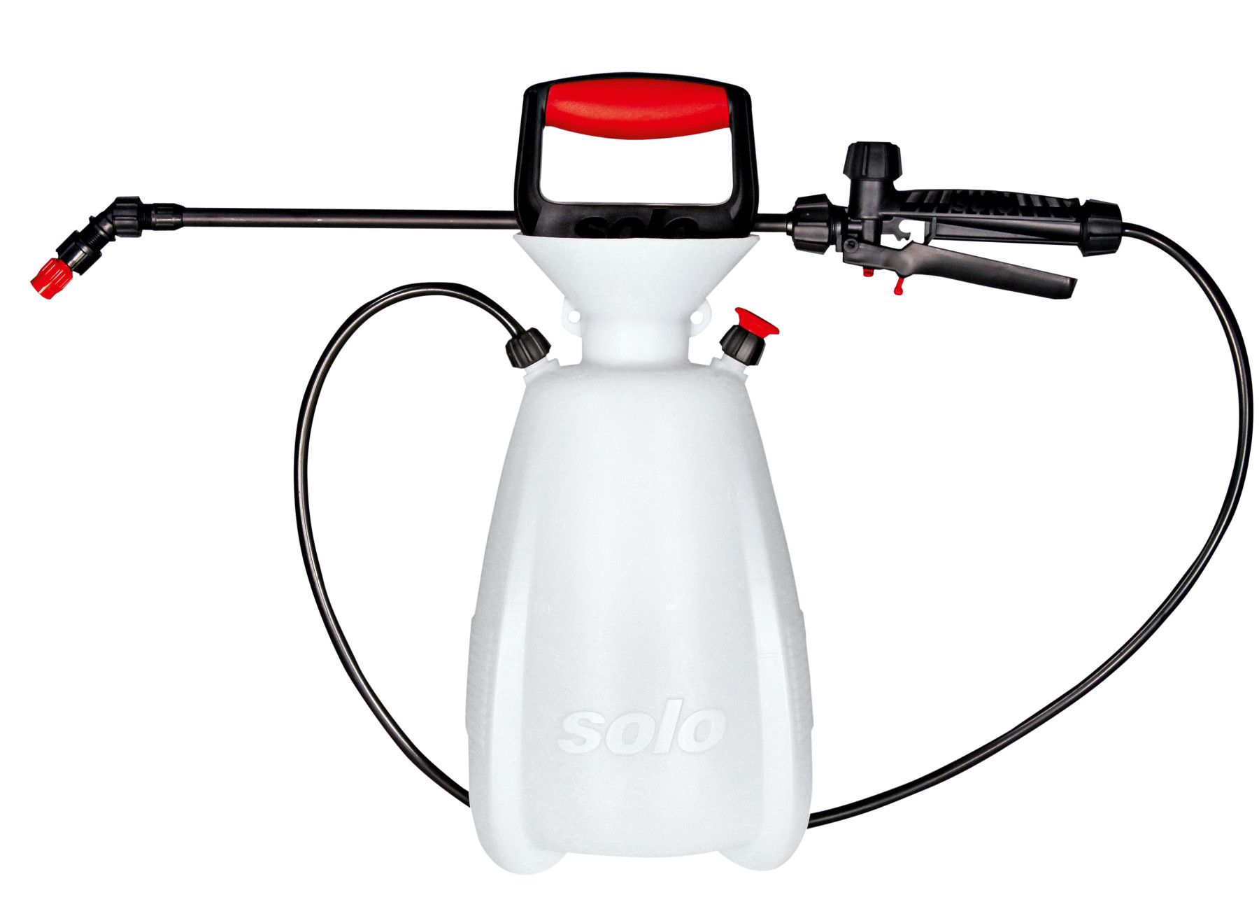 Das schultertaugliche Modell der BASIC-Reihe hat ein Fassungsvermögen von 5,0 Litern, das für größere Flächen und Räume ausreicht.Das Modell BASIC bietet mit seinen 5,5 l Fassungsvermögen das Volumen, um auch einige Quadratmeter Fläche zu besprühen.Der transparente Kunststoffbehälter ermöglicht es, mit wenigen Pumpen einen maximalen Spritzdruck von 2 bar zu erreichen. Das Sprühgerät ist mit den neuen Träger- und Pumpstäben ausgestattet. Damit steht Ihnen eine breite Palette von SOLO-Sprühzubehör zur Verfügung. (Siehe unten, verwandte Produkte) Die großen, trichterförmigen EinsätzeDie große, weite Einfüllöffnung ermöglicht ein sauberes und einfaches Befüllen und Entleeren. Die verstellbare, konische Universaldüse ermöglicht eine variable Dosierung.40 cm langes Kunststoffspritzrohr, verstellbare Kunststoffdüse, 1,2 m langer Schlauch, Sicherheitsventil.