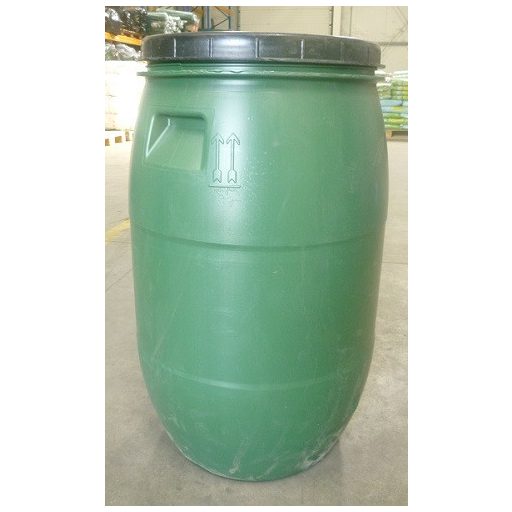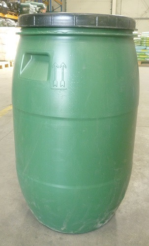 Tonne mit Regranulat (recycelter Kunststoff) im Material, nicht für die Lagerung von Lebensmitteln geeignet.
