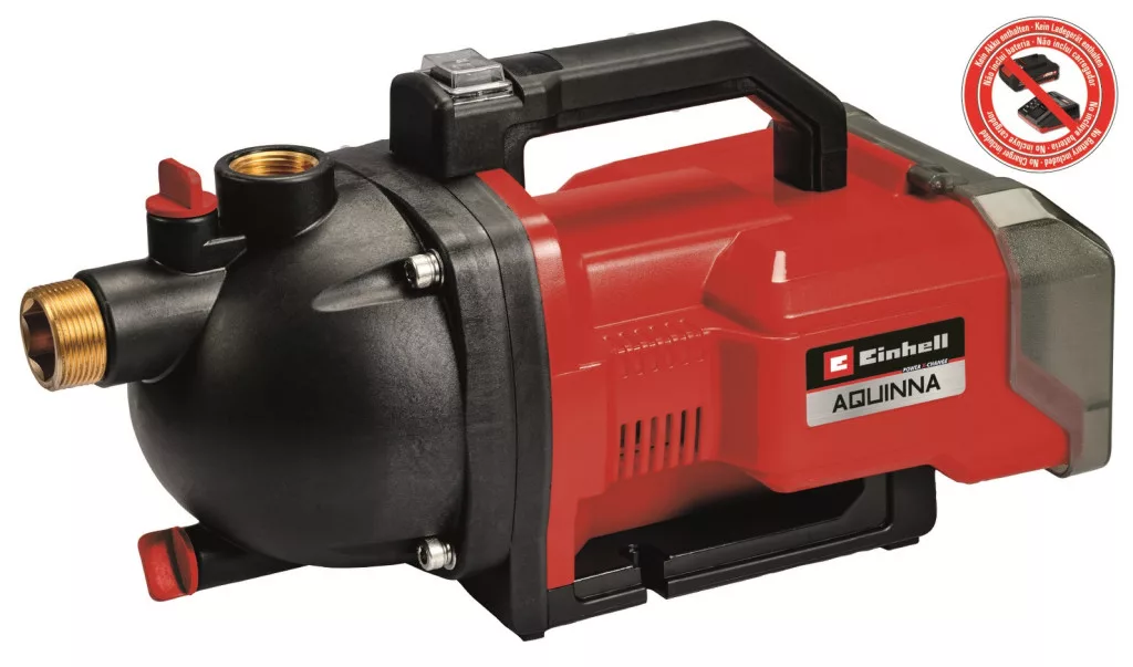 Mit der Einhell AQUINNA Akku-Gartenpumpe können Sie Regenwasser aus dem Garten, aus Brunnen und Zisternen wiederverwenden: Sie sparen nicht nur Geld, sondern schonen auch die Umwelt. Die AQUINNA-Gartenpumpe wird von 2 18 V Power X-Change-Batterien angetrieben. Die leistungsstarken Power X-Change-Batterien können mit allen Mitgliedern der Serie verwendet werden, egal ob Sie mit Garten- oder Elektrowerkzeugen arbeiten. Für die richtige Einstellung sorgt der zweistufige ECO-Schalter: Verwenden Sie sie im Energiesparmodus (geringerer Druck) oder mit maximaler Leistung. Mit einer Förderhöhe von 26 Metern, einer Saugtiefe von 8 Metern und einer maximalen Fördermenge von 3000 Litern pro Stunde bietet die AQUINNA Akku-Gartenpumpe ein hervorragendes Preis-Leistungs-Verhältnis. Der saugseitige Schlauchanschluss ist 42 mm (1 1/4""-Außengewinde) und der druckseitige Anschluss 33,3 mm (R1-Innengewinde). Das Gerät ist mit einer Wassereinfüll- und einer Entwässerungsschraube ausgestattet, um Frostgefahr zu vermeiden. So kann die Gartenpumpe auch in kalten Jahreszeiten sicher gelagert werden. Ein Überhitzungsschutz schützt den Motor vor Überlastung. Dank des praktischen Tragegriffs können Sie die Akku-Gartenpumpe leicht zum Einsatzort bringen. Das Gerät wird ohne Akku und Ladegerät geliefert, die separat erworben werden können, zum Beispiel in einem praktischen Starterset.