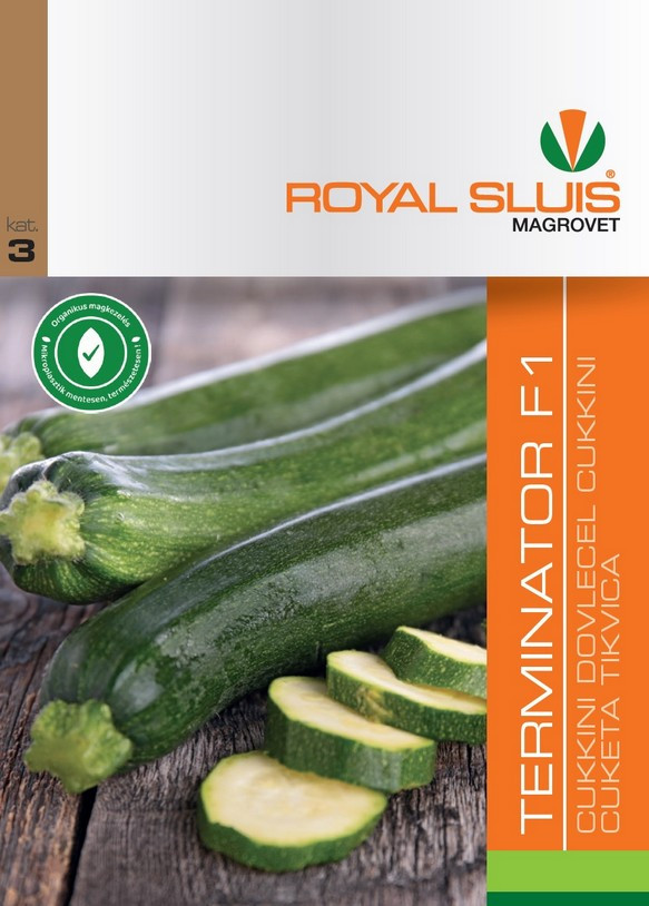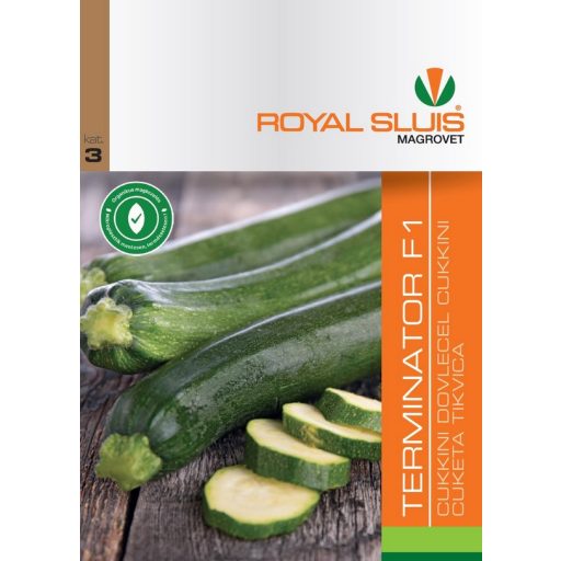 Frühe Zucchinisorte. Eine buschige Pflanze ohne Äste. Frucht dunkelgrün, lang, zylindrisch.