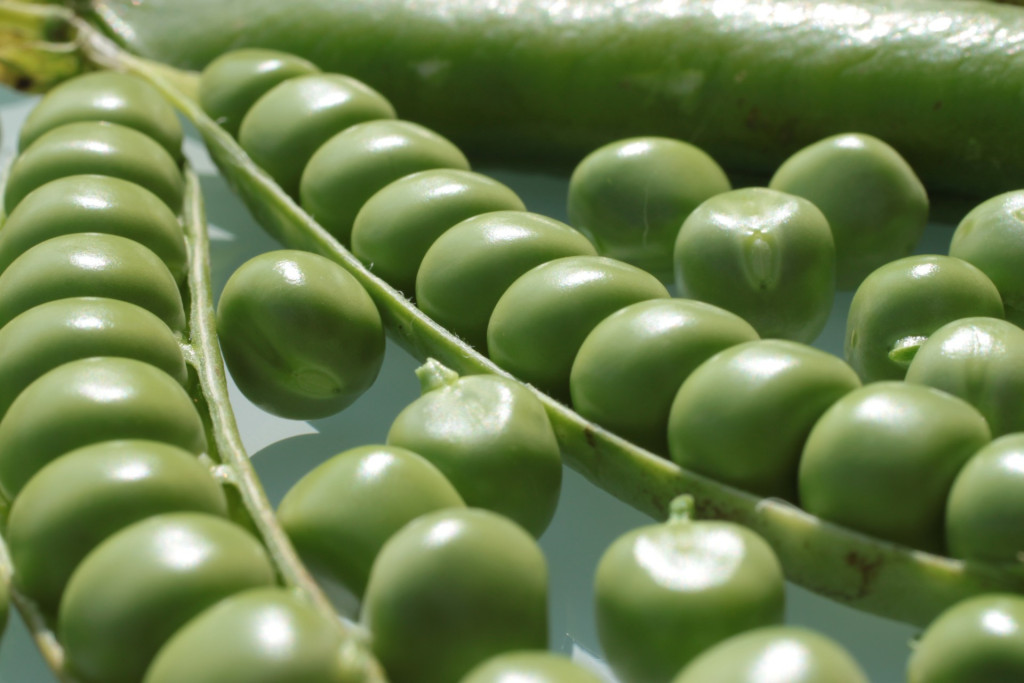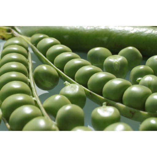 Eine mittelgroße grüne Erbse (10 cm) mit einer langen Hülse und hohem Ertragspotenzial.