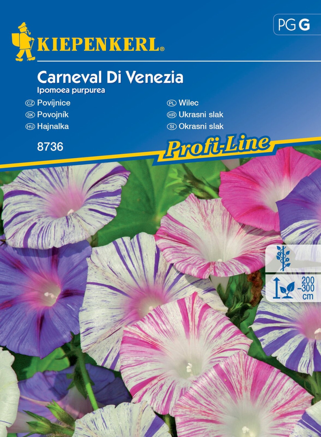 Eine kräftige, schnell wachsende und reichblühende einjährige, pflegeleichte Kletterpflanze. Pflanzung im Februar-März, Aussaat im Feld im April-Mai, 1-2 cm tief. Keimung 10-14 Tage bei 15-25°C. Kann nach den Frösten ins Freiland gepflanzt werden, benöti...