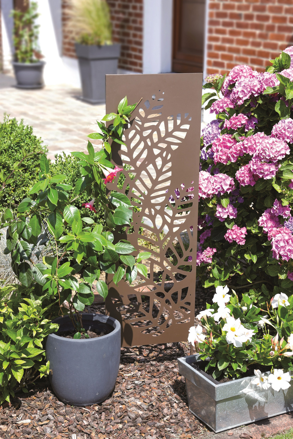 Der ATHEA Trellis mit seinem einzigartigen Motiv kann das Wachstum Ihrer Kletterpflanzen fördern und nicht zuletzt in Kombination mit zwei anderen Elementen der ATHEA-Reihe eine vollständige Harmonie in Ihrem Garten schaffen.