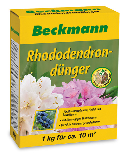 Gesunder, leicht saurer Boden mit gutem Humusgehalt und Beckmann Bio-Mineral-Pflanzennahrung für Rhododendren, Azaleen, Hortensien und Heidelbeeren verhilft Rhododendren und anderen Sumpfpflanzen zu gutem Wachstum und üppiger Blüte. Es enthält alle wichtigen Hauptnährstoffe und natürlich gebundene Spurenelemente. Eisen und Magnesium verbessern die Blattfarbe und verhindern Chlorose. Chlorose ist die Vergilbung zwischen den Blattadern, die oft durch einen Mangel an Mineralien wie Eisen oder Magnesium verursacht wird.