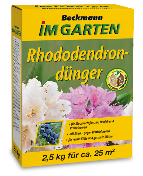 Gesunder, leicht saurer Boden mit gutem Humusgehalt und Beckmann Bio-Mineral-Pflanzennahrung für Rhododendren, Azaleen, Hortensien und Heidelbeeren verhilft Rhododendren und anderen Sumpfpflanzen zu gutem Wachstum und üppiger Blüte. Es enthält alle wichtigen Hauptnährstoffe und natürlich gebundene Spurenelemente. Eisen und Magnesium verbessern die Blattfarbe und verhindern Chlorose. Chlorose ist die Vergilbung zwischen den Blattadern, die oft durch einen Mangel an Mineralien wie Eisen oder Magnesium verursacht wird.