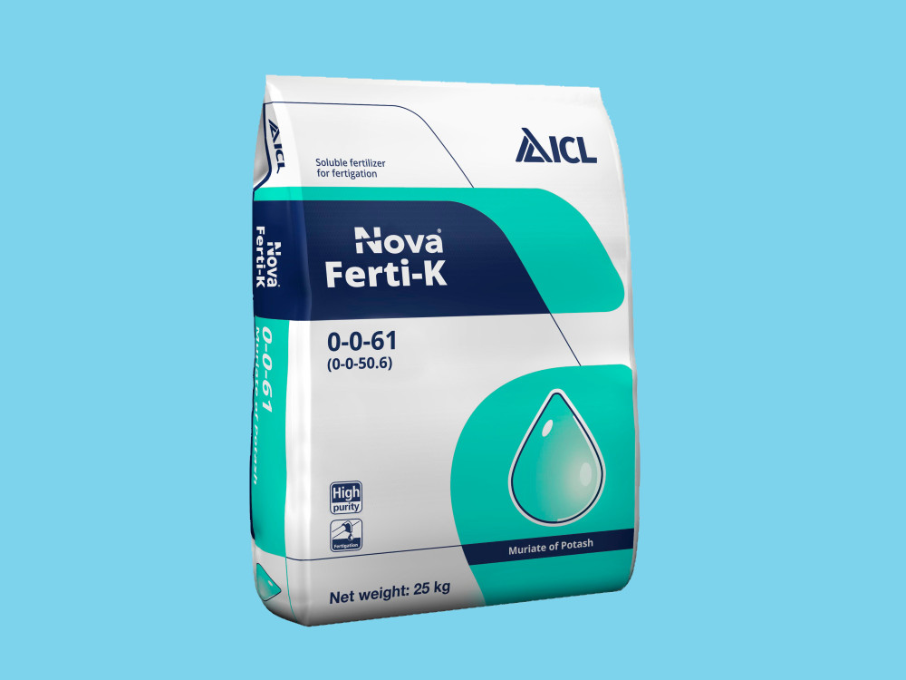 Nova Ferti-k ist ein stickstofffreier Kaliumdünger, der ein wichtiges Element für die Entwicklung von Pflanzen und Früchten ist.Er verbessert die Farbe, die Süße und den Ölgehalt der Früchte.Chlor spielt zusammen mit Kalium eine wichtige Rolle bei der Regulierung des gesamten osmotischen Drucks zwischen den Pflanzenzellen.Es ist direkt an der Regulierung der Öffnung/Schließung der Stomata beteiligt.