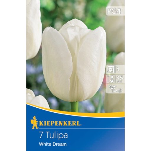 Merkmale der Weißen Traumtulpe: Tulpe mit schneeweißen Blütenblättern. Die White Dream ist eine weiße, weiß-weiße Blume. Die weißen Blüten haben eine weiß-weiße Farbe und werden als Einzelblüte geschnitten. Höhe: 45 cm hoch. Blütezeit: Blüht im April.