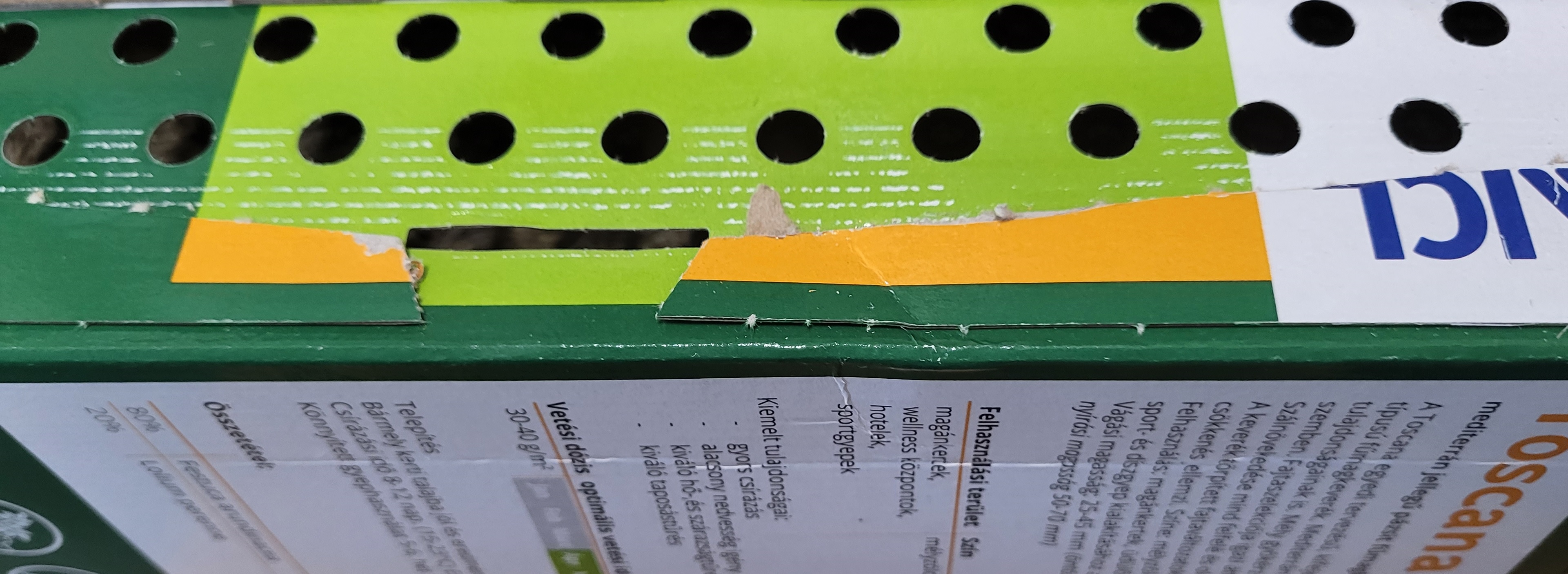 A special feature of the box is that the sides are opened to reveal spreading holes to help spread the grass seed evenly.