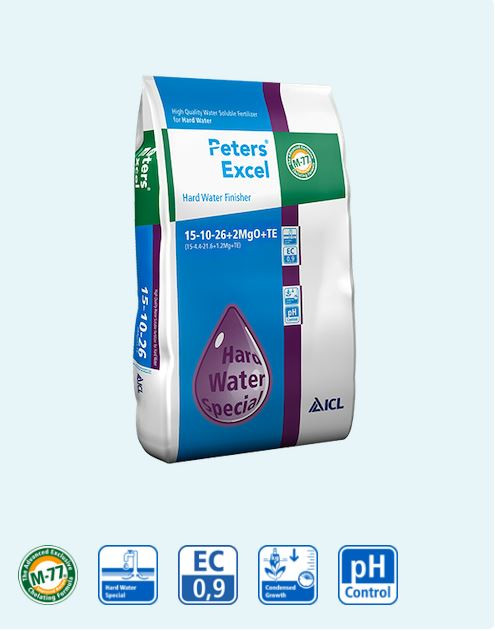 Peters Excel 15-10-26 (Hard Water Grow Special) ist ein erstklassiger wasserlöslicher Dünger, der den Bikarbonatgehalt von hartem Bewässerungswasser neutralisiert.