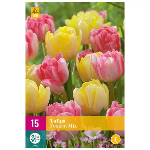 Eine Mischung aus zwei schönen gefüllten frühen Tulpen, Foxtrot und Foxy Foxtrot. Am besten für Gruppen im Beet, aber auch für Terrasse und Balkon geeignet. Gut kombinierbar mit Muscari-Sorten.