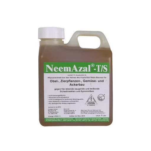 Mischen Sie das biologische Insektizid Neem Azal nicht mit einem anderen Produkt auf Ölbasis! Es handelt sich um ein lichtempfindliches Produkt, daher wird das Sprühen am frühen Morgen und am späten Nachmittag - Abend empfohlen!