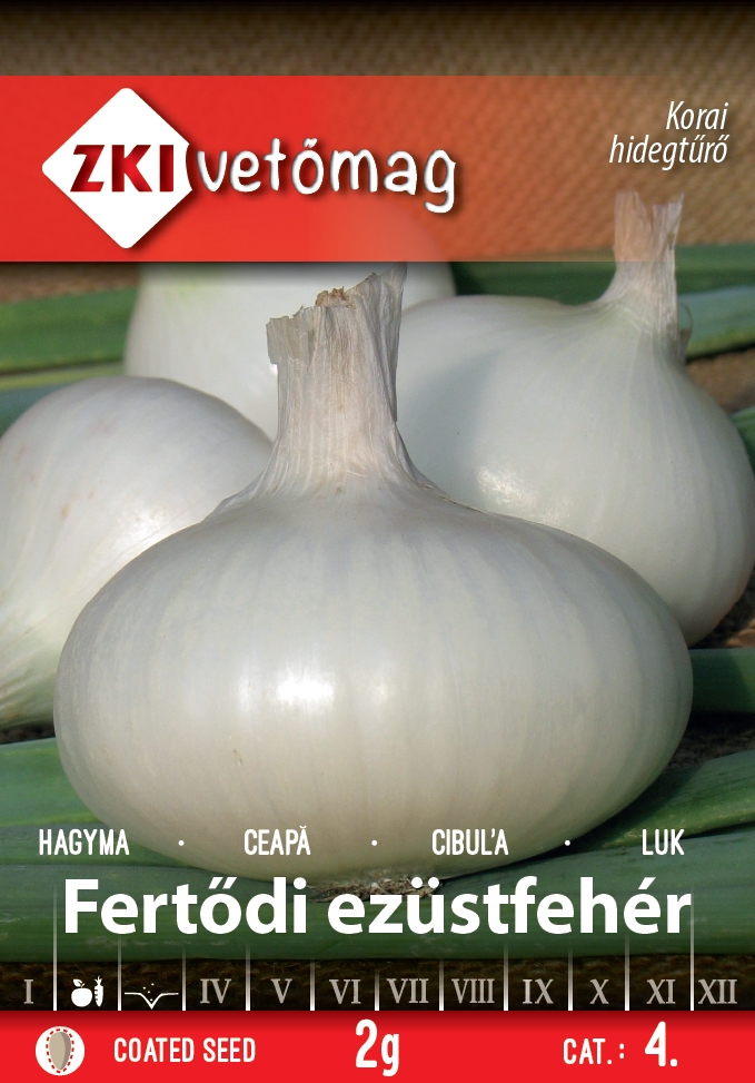 The silver-white variety Fertődi can also be grown as a pearl onion by producing 10-30 mm bulbs by sowing densely. The bulbs are spherical in shape with a white skin. The bulbs have a medium growing period and a slightly pungent taste. To grow pearl onions, the soil must be fine, crumbly, well-textured, level and weed-free. It is particularly important that the seeds are planted 4-5 cm deep, as the bulbs may turn green if they reach the surface. Plant protection is preventive, mainly against onion fly and onion peronospora. Harvesting of the bulbs should start when the small bulbs have reached the desired size (a bag contains about 500-550 seeds).