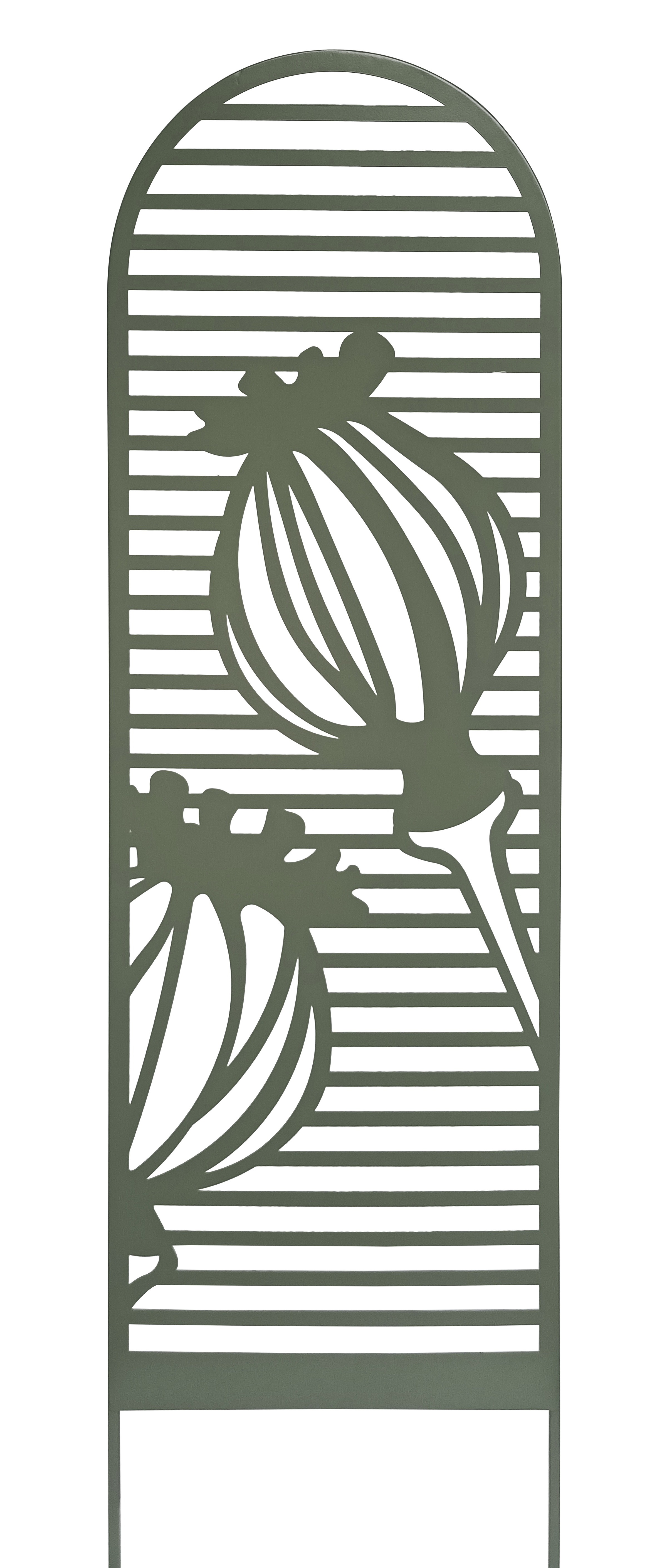 Metal planter with decorative poppy motifs Puppy trellis olive green 0,33x1,22 m
