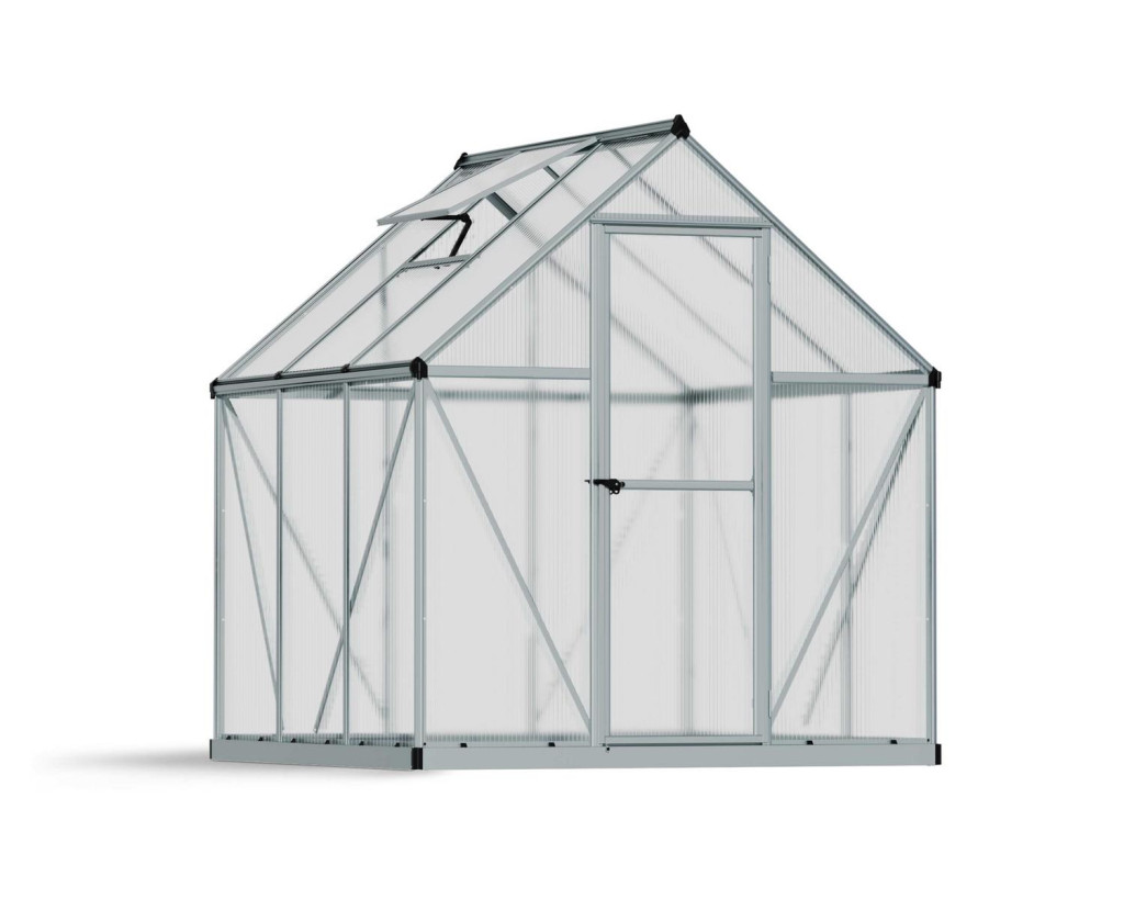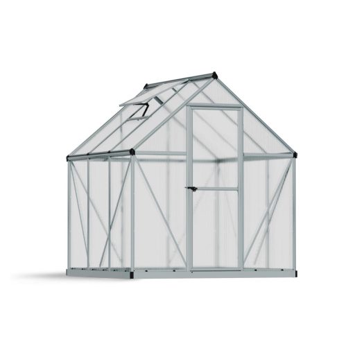 Das silberne Palram-Canopia MYTHOS Polycarbonat-Gewächshaus mit 1,83 x 1,83 m Grundfläche ist eine durchdachte, kompakte Lösung für alle, die ihren Pflanzen im Garten einen zuverlässigen, geschützten Platz bieten möchten.