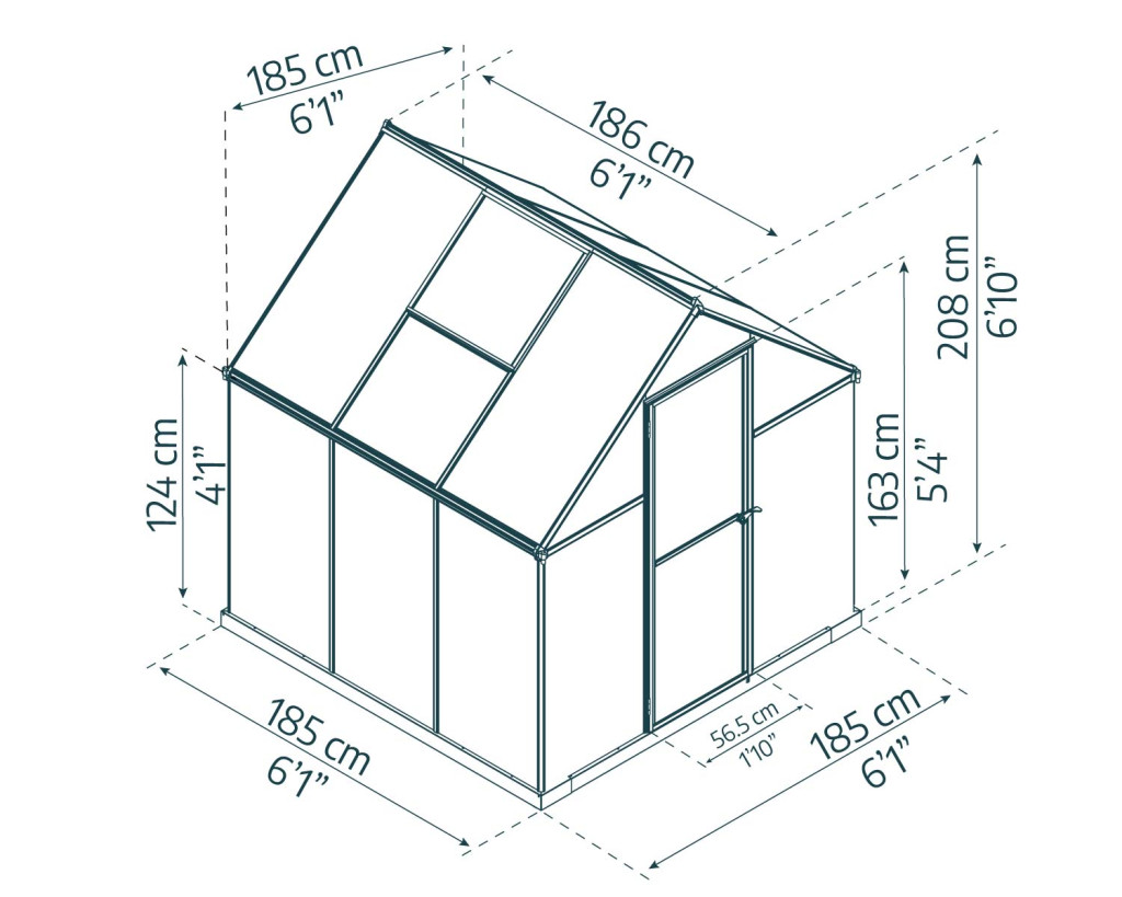 Das Palram-Canopia MYTHOS Polycarbonat-Gewächshaus ist eine praktische Lösung für den geschützten Anbau von Gemüse, Setzlingen und Zierpflanzen. Die Grundfläche von 1,83 x 1,83 m ist kompakt, bietet aber dennoch ausreichend Platz für verschiedene Pflanzen – ob in Hochbeeten, Pflanzkästen oder auf Regalen.